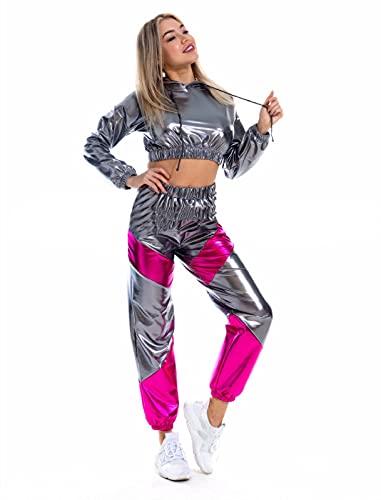 Dames Color Block Laser Metallic Broek Lady Fashion Shiny Streetwear Hip Hop Broek Bronzing Joggers Bottom