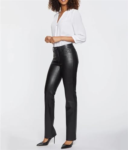 IMOSEI Leren Broek Dames, Vintage PU rechte broek dames slanke stretch bodycon broek kantoor dame woon-werkverkeer hoge taille lederen broekzak