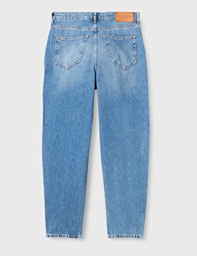 Met hoge taille, brede pijpen, vijf-pocket-stijl met contrasterende naden en echt, rustiek leren label op de tailleband achter.