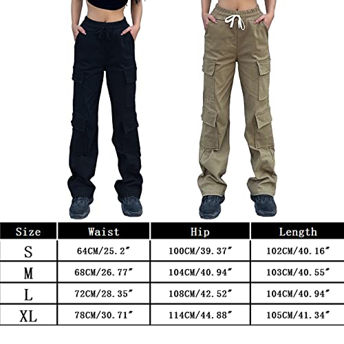 Specificaties: Nuofengkudu Womens Stretch Cargo Broek met Zakken Utility Elastische Hoge Taille Trekkoord Combat Werkbroek Tiener Meisjes Y2K Streetwear
