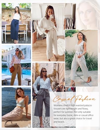 [Eenvoudig aan te passen] dames stretch hoge taille palazzo broek is lichtgewicht en zwierig, perfect voor de zomer. Niet alleen geschikt voor dagelijks gebruik, thuis, date of casual kantoor, maar ook een goede keuze voor reizen en strand. Deze broek met wijde pijpen kan worden gecombineerd met overhemden, T-shirts, tanktops of andere tops, wat de perfecte combinatie is van elegantie en comfort.