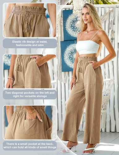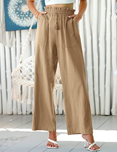 Specificaties: Voqeen Casual broek voor dames, hoge taille, wijde pijpen, loungebroek, trekkoord, elastische taille, losse comfortabele zakelijke werkbroek met zakken
